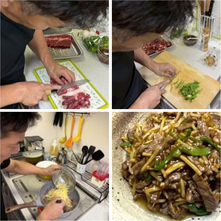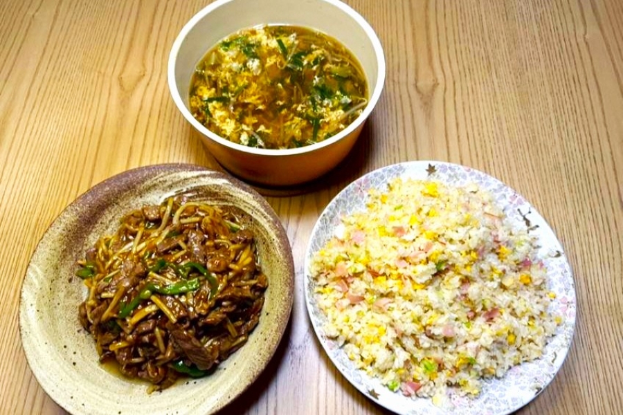 パパが「チンジャオロース」、長女が「スープ」、次女が「チャーハン」をそれぞれ作ることになりました。