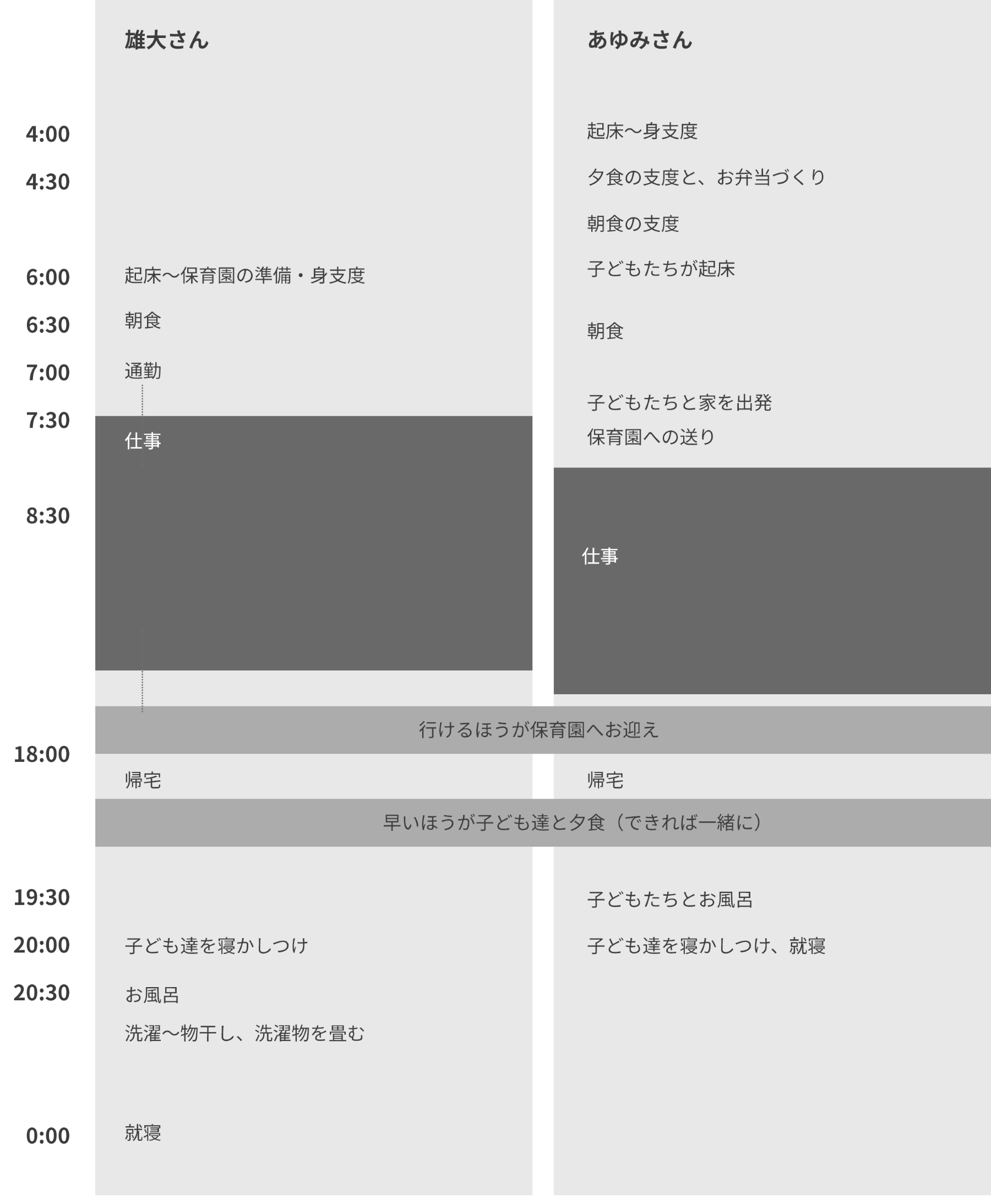 - お2⼈はどのように家事‧育児を分担されていますか?