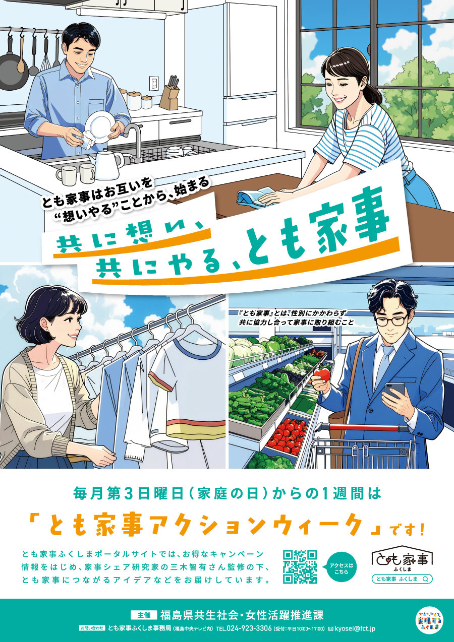 県では、固定的な性別役割分担意識を解消するため、性別にかかわらず共に協力し合って家事に取り組む「とも家事」を推進することで、誰もが活躍できる社会の実現を目指しており、その広報・啓発に使用するため、「とも家事」の推進を広く県民に呼びかけるキャッチコピーを募集しました。